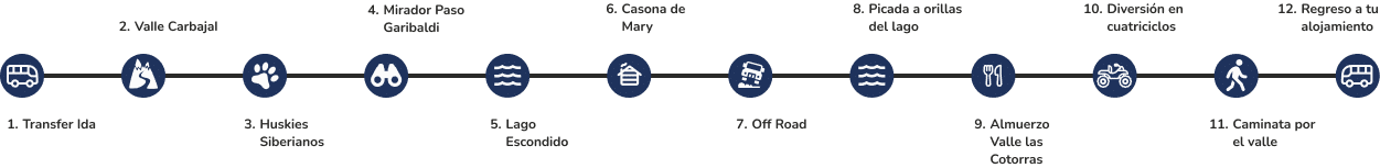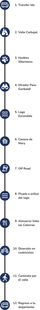 A bordo de nuestras camionetas 4×4 Toyota Land Cruiser Prado, vas a recorrer la Ruta Nacional N°3 en dirección norte, con paradas en el mirador del Valle Carbajal y en Siberianos de Fuego, donde vas a conocer a los famosos perritos huskies siberianos. Durante el camino, vas a descubrir los centros invernales de Ushuaia, como el Cerro Castor, y ascender el Paso Garibaldi, el único paso transcordillerano que conecta Ushuaia con el resto de Tierra del Fuego.
