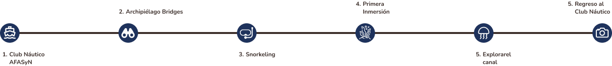 Al llegar al Archipiélago Bridges, vas a comenzar la primera parte de tu experiencia de buceo de bautismo: vas a hacer snorkeling, una actividad ideal para familiarizarte con el equipo y los trajes secos. Este momento es perfecto para que puedas adaptarte al agua cómodamente y prepararte para lo que viene.