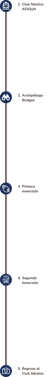 Vas a navegar hacia el Archipiélago Bridges, una zona ideal para hacer buceo en Ushuaia, donde vas a realizar dos inmersiones rodeado por el paisaje submarino característico del Canal Beagle: bosques de algas, centollas, estrellas de mar, erizos y distintas especies que forman parte de la vida marina de esta región austral.