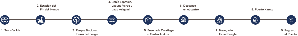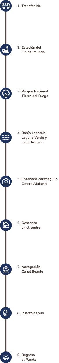The departure is from the Ushuaia Tourist Port, in the heart of downtown. The exact point is clearly indicated in your reservation. You must arrive at least 30 minutes early, so you can board calmly.