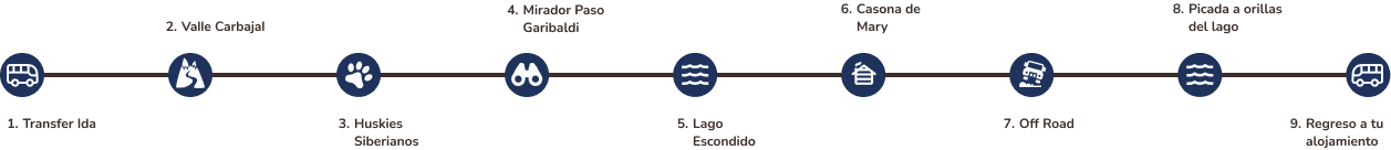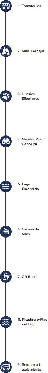 A bordo de nuestras 4x4 trucks vamos a recorrer la National Route N°3 en dirección norte, con paradas en el Valle Carbajal viewpoint and at Siberianos de Fuego, donde vas a conocer a los famosos perritos huskies siberianos. Durante el camino, vas a descubrir la ubicación de los Ushuaia's winter resorts, like the Cerro Castor, y ascender el Garibaldi Pass, our only cross-Andean pass que une la ciudad de Ushuaia con el resto de Tierra del Fuego.
