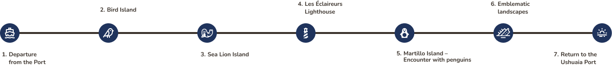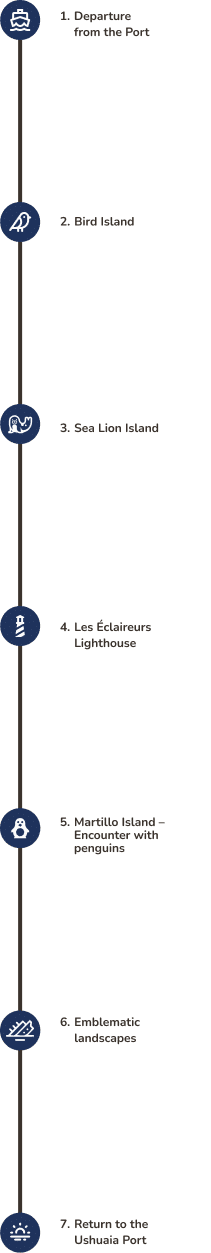 The excursion starts at the Ushuaia Tourist Port, located right in the city center, a very accessible and easy-to-find place. When you confirm your booking, we will clearly indicate the exact meeting point. Please note that this excursion does not include transfer, so we recommend that you arrive at the port on your own at least 30 minutes in advance, so you can board calmly and fully enjoy the experience.