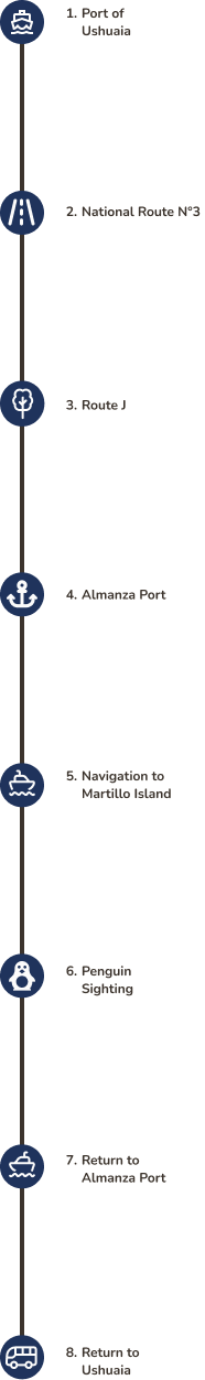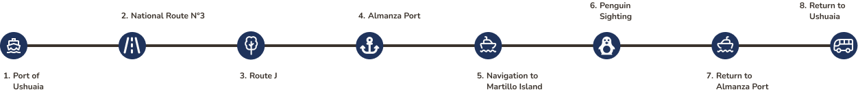 • The pick-up is directly at the Ushuaia tourist port, located just a few blocks from the city center.