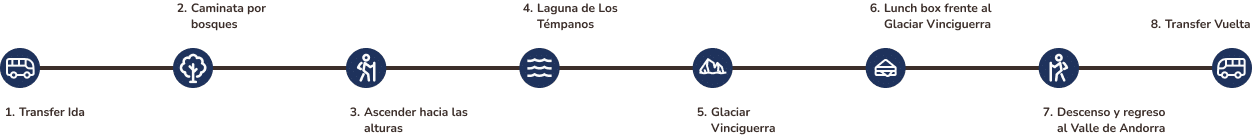 Al llegar al inicio del sendero, our chofer nos va a estar esperando para regresar a Ushuaia. We'll take you back to your accommodation in Ushuaia, with the satisfacción y alegría de haber vivido una de las experiencias más desafiantes y memorables de tu viaje al Fin del Mundo: the trekking al Glaciar Vinciguerra.