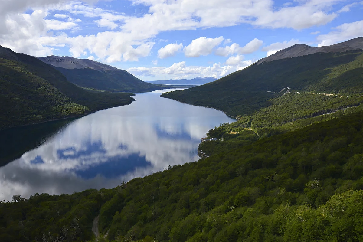 Seguimos camino y comenzamos a ascender por el famoso Paso Garibaldi, el paso transcordillerano que une la ciudad de Ushuaia con el resto de ciudades de Tierra del Fuego, siendo nuestra única conexión terrestre. Vamos a llegar a uno de los puntos panorámicos más importantes del recorrido: el Mirador Paso Garibaldi, desde donde se obtienen vistas panorámicas del Lago Escondido, encerrado entre bosques y montañas, y el inmenso Lago Fagnano de fondo.
