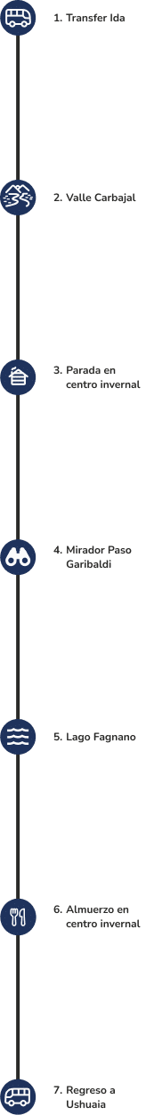 Imaginate comenzando la mañana con la comodidad de saber que te espera un día lleno de paisajes increíbles y momentos únicos. Te pasamos a buscar por tu alojamiento para iniciar esta aventura relajada, disfrutando lo mejor del Fin del Mundo.