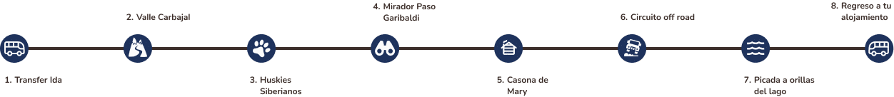 📍 Punto de encuentro: Te pasamos a buscar por la puerta de tu alojamiento. Al finalizar, te dejamos en tu alojamiento o en el centro de Ushuaia para que puedas seguir paseando.