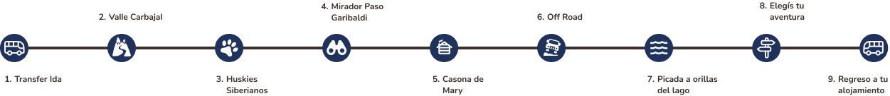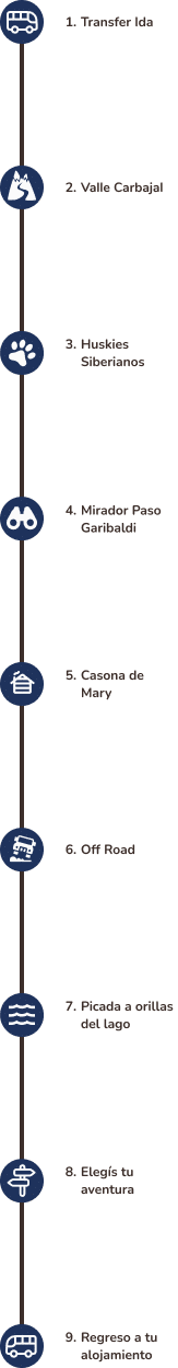 A bordo de nuestras camionetas 4×4 Toyota Land Cruiser Prado, vas a recorrer la Ruta Nacional N°3 en dirección norte, con paradas en el mirador del Valle Carbajal y en Siberianos de Fuego, donde vas a conocer a los famosos perritos huskies siberianos. Durante el camino, vamos a descubrir la ubicación de los centros invernales de Ushuaia, como el Cerro Castor, y ascender el Paso Garibaldi, nuestro único paso transcordillerano que une la ciudad de Ushuaia con el resto de Tierra del Fuego.