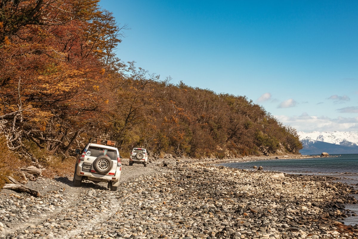 - 🚙 Aventura Lagos 4×4: vas a recorrer caminos rodeados de árboles rojizos y dorados, con naturaleza, emoción y adrenalina off road disfrutando de una picada a orillas del Lago Fagnano.