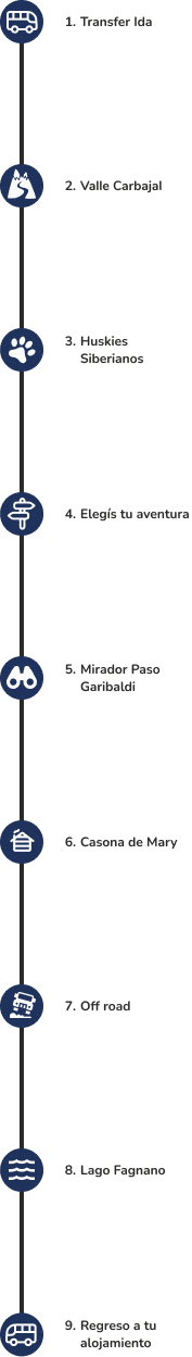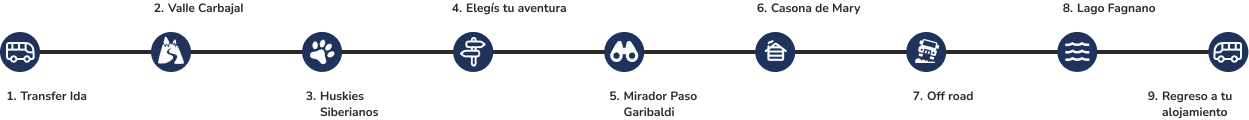 Continuamos em direção a Siberianos del Fuego, o canil onde os huskies siberianos recebem os visitantes com sua energia inconfundível. Você vai poder acariciá-los e conhecer mais sobre a tradição do mushing em Ushuaia, uma prática que faz parte da identidade local.