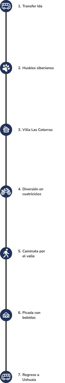 📍 Ponto de Encontro: buscamos você na porta da sua acomodação. Ao terminar, deixamos você em nosso escritório no centro de Ushuaia para que possa continuar aproveitando ou participar de outra excursão.