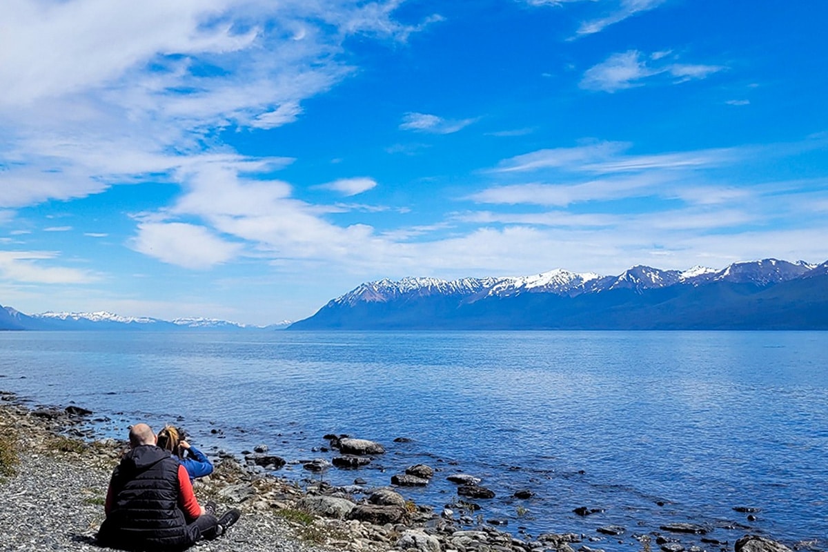 Frente a uno de los lagos más grandes de nuestra Argentina, vas a tener tiempo libre para caminar por la orilla del Lago Fagnano, sacar fotos y contemplar el horizonte infinito del lago. Además, vas a compartir una picada con bebidas (agua, gaseosa o vino) con la inmensidad del agua frente a vos y las montañas en el fondo.