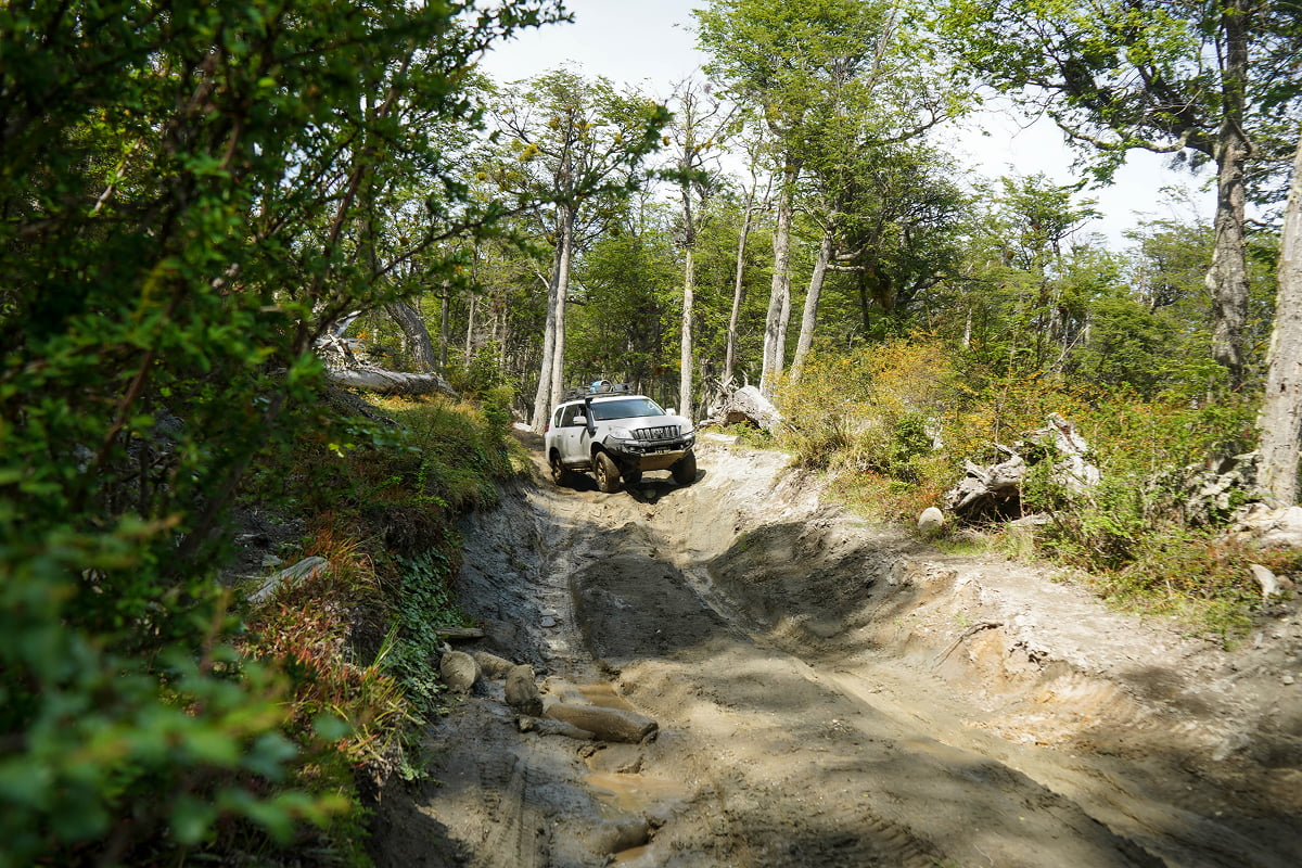En este tramo nuestras camionetas 4×4 se ponen a prueba: huellas de barro, raíces, desniveles y caminos irregulares que parecen imposibles para cualquier otro vehículo. Junto con nuestros choferes expertoso adrenalina y la diversión se combinan con el entorno natural, atravesando bosques y senderos escondidos hasta llegar a la costa del Lago Fagnano.