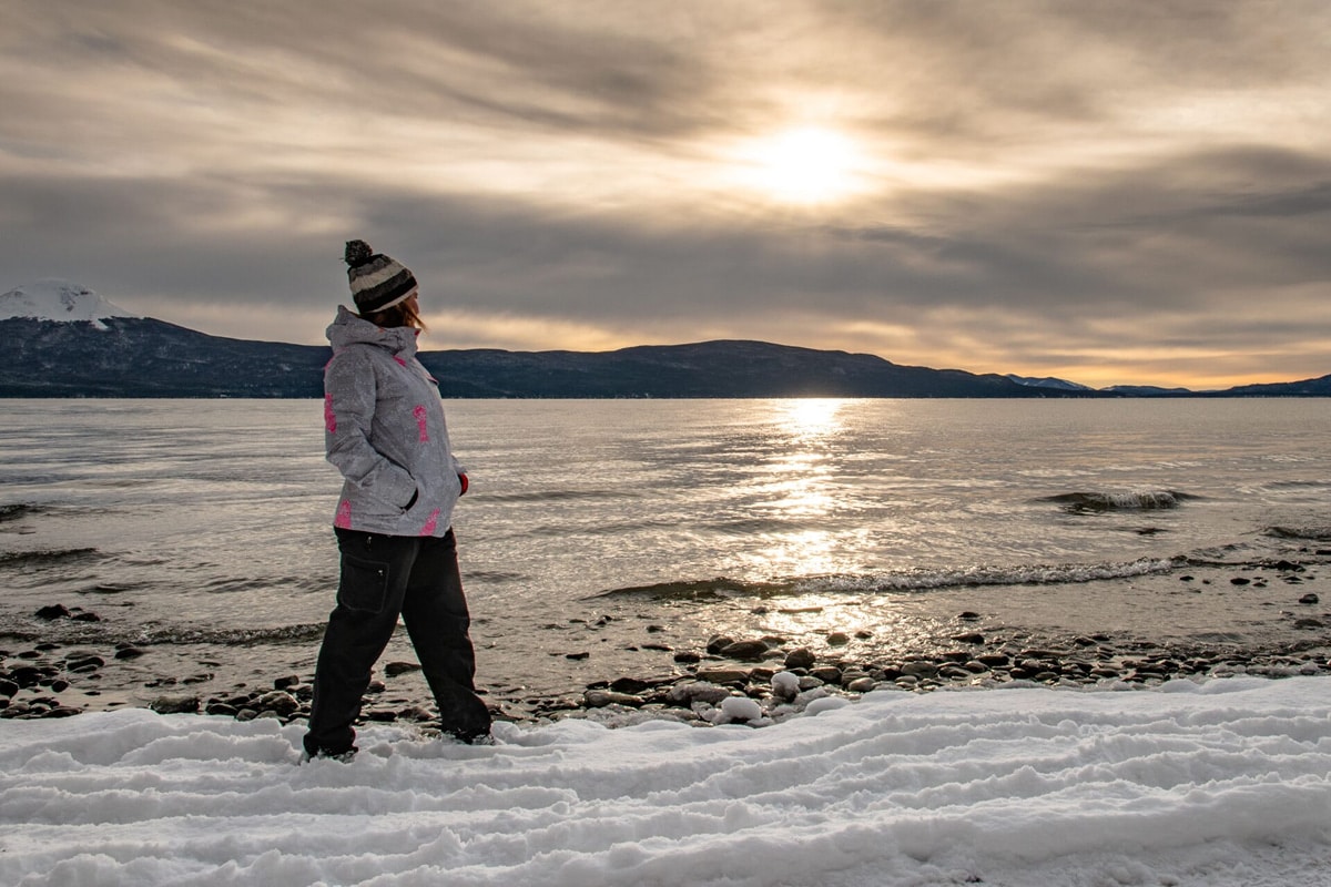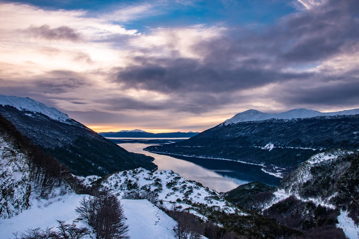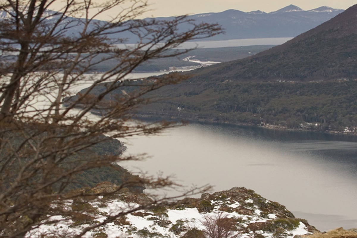 En la costa del Lago Fagnano, uno de los más grandes de nuestra Argentina, vas a poder caminar por la orilla, sacar fotos y degustar una picada con bebidas (agua, gaseosa o vino) mientras disfrutás de la calma y los paisajes invernales del Fin del Mundo.