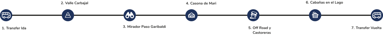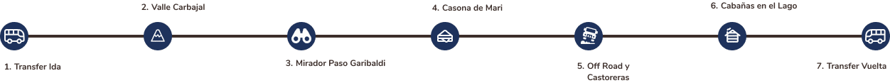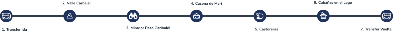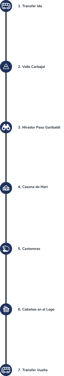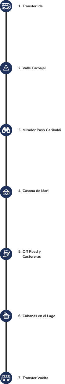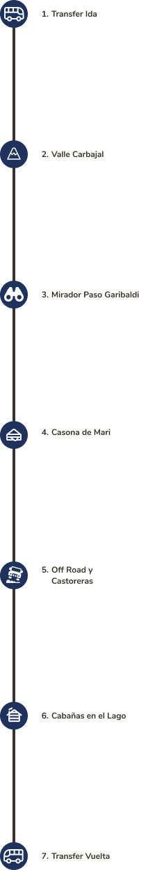 La aventura te lleva al mirador Valle Carbajal, rodeado de turberas y montañas; al criadero de perritos huskies siberianos de Siberianos del Fuego, donde vas a encontrarte con estos perritos llenos de energía; y al mirador del Passe Garibaldi, nuestro paso transcordillerano, con vistas a los lagos Escondido y Fagnano. La aventura sigue por el circuito histórico Garibaldi, atravesando antiguos caminos de hacheros hasta llegar a la orilla del Lago Escondido.