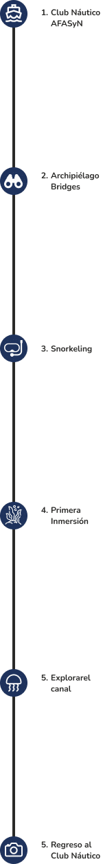 Imaginate comenzar tu día en un ambiente cómodo y relajado, aprendiendo las técnicas básicas del buceo para luego navegar en nuestra embarcación hacia las cristalinas aguas del Archipiélago Bridges. Una vez allí, vas a vivir la emoción incomparable de sumergirte por primera vez en este paisaje submarino vibrante, donde bosques sumergidos de algas gigantes, centollas, estrellas de mar, erizos y diversas especies marinas te van a sorprender con su intensa actividad veraniega.