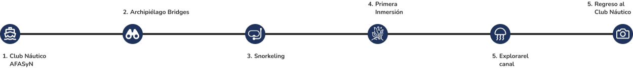 Al llegar al archipiélago Bridges, vas a comenzar tu experiencia con snorkeling, ideal para familiarizarte con el equipo y los trajes secos. Este momento es perfecto para que puedas adaptarte al agua cómodamente, preparándote para lo que viene.