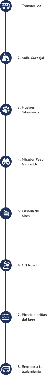 📍 Punto de encuentro: Te pasamos a buscar por la puerta de tu alojamiento. Al finalizar, te dejamos en tu alojamiento o en el centro de Ushuaia para que puedas seguir paseando.