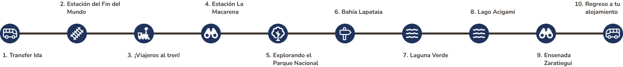 Después de una tarde repleta de historia y naturaleza, emprendemos el regreso hacia tu alojamiento en Ushuaia. Vas a sentir que en una sola jornada viviste la verdadera esencia del Fin del Mundo, entre paisajes únicos, relatos históricos y la belleza natural de Tierra del Fuego.