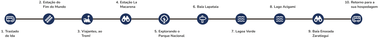 O passeio Parque Nacional + Trem do Fim do Mundo – Sunset em Ushuaia reúne duas das experiências imperdíveis no Fim do Mundo em sua versão vespertina: o histórico Trem do Fim do Mundo e a visita aos locais mais emblemáticos do Parque Nacional Terra do FogoUma proposta idealizada para aproveitar a tarde entre história, natureza e os cenários mais reconhecidos da cidade mais austral do mundo. Durante a primavera em Ushuaia, o ambiente se renova: as florestas recuperam sua cor verde, as flores silvestres surgem nos vales e o clima mais ameno permite aproveitar cada parada com maior conforto. Você subirá no famoso Trem do Fim do Mundo, revivendo no tempo e no espaço os últimos 7 km do percurso original que os antigos prisioneiros da cadeia de Ushuaia faziam há um século atrás. A bordo de seus vagões panorâmicos, você contemplará paisagens de vales, rios e florestas, emolduradas pela cordilheira e pela história desta terra austral. Além disso, você irá descobrir os principais atrativos do Parque Nacional Terra do Fogo, o único parque nacional em nossa Argentina onde o floresta, o mar e as montanhas se unem em um mesmo cenário. Durante a visita, você conhecerá lugares icônicos como:
