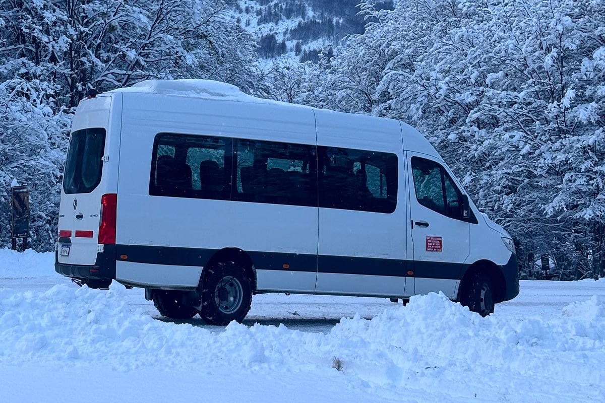 Utilizamos veículos confortáveis, fechados e climatizados, adaptados especialmente para as condições do clima fueguino. O tipo exato de veículo depende do traslado reservado e da quantidade de passageiros, priorizando sempre o seu conforto.