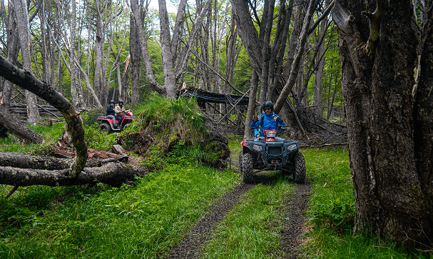 - La otra alternativa es sumar atividades exclusivas que permiten vivir lo mejor de las actividades al aire libre en primavera y verano. Vas a tener la posibilidad de vivir la adrenalina e emoção de percorrer a valle y el bosque no quadriciclos, donde si sos maior de 18 anos vas a poder manejarlo vos mismo! Y en caso de no querer manejarlo o ser menor de edad, siempre se puede ir como acompañante y disfrutar del paisaje con total tranquilidad. También, vas a tener la oportunidad de realizar una caminata a una castorera activa, donde se puede apreciar cómo los animales transformaron y alteraron el ecosistema de Ushuaia con sus represas e lagoas. Todo se realiza bajo el acompañamiento de nossos instrutores especializados que acompañan el recorrido. Luego de las actividades arrancamos la travesía 4×4 off road.