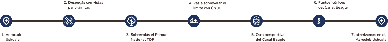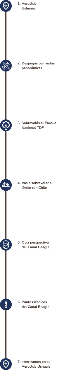 La experiencia comienza en el Ushuaia Aeroclube, punto de encuentro para iniciar el sobrevuelo en avioneta. Allí, nuestro equipo te va a recibir y compartir una breve charla de seguridad previa al vuelo, así podés conocer los detalles, relajarte y aprovechar plenamente cada minuto de esta experiencia en el aire.